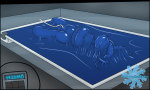 His suit, which hugged his body exceptionally tight, was tugged on by the firm robots, making him squirm as how compressed he felt… By the slack, his front hooves were pulled to cross his chest, keeping him immobile and unable to fight back. There was a click from behind him as the intrusion in his rump began to buzz, taking his mind off his predicament for the most important moments of the transfer. He felt his blush grow more and more intense as his body is lowered into the blue contraption, which bent around his body in a way that reminded him of lying on a hammock, had it been made of memory foam that contoured to his body.