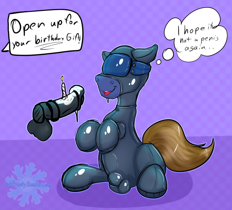 Wing’s eyes finally snapped open after a loud gasp erupted from his muzzle. Frosty stood in front of him, still wearing that sly grin as a blue ball gag dangled in the unicorn’s aura. It drifted closer and closer to the pegasus over the subsequent seconds until it hovered at the tip of the stallion’s snout—as if it were posing the question.