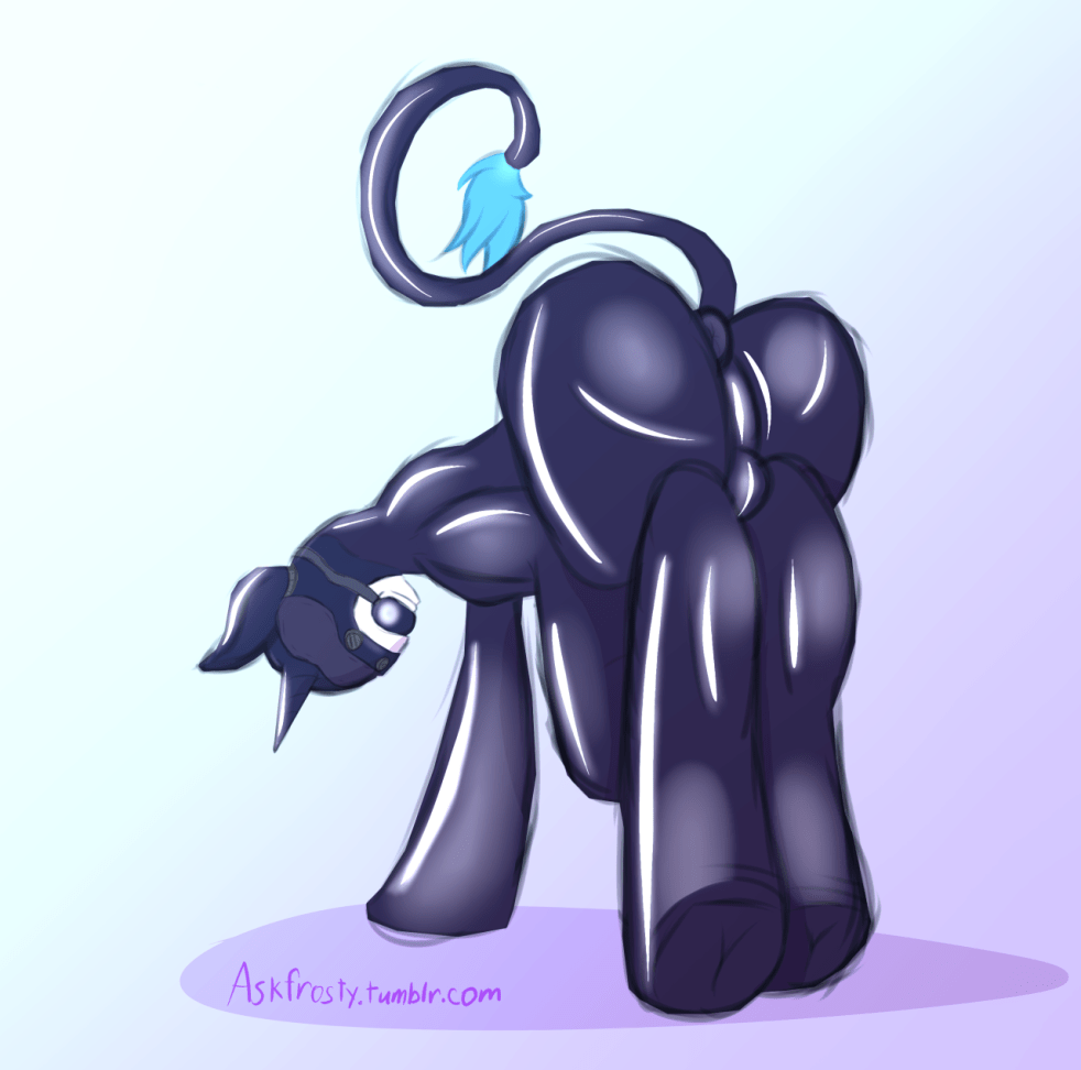 His hooves would twitch and sometimes even move slightly for a moment before returning to their limp ragdoll-like state. “Hello Frosty~” said a voice from what seemed like everywhere at once. Frosty wanted to turn his head and look for it, to open his maw and ask who was there, or to even just wave his hoof to indicate he was more than just a latex toy on the ground…But he couldn’t, no matter what he tried, or what he did he couldn’t do anything. Everything was numb to him yet he could still feel the latex on his coat, the throb of his cock, and the voice inside his head…Then, his body sprang to life, getting up on all fours seemingly on its own as the voice from inside became a little something more than just that. “Its been so long since I’ve had a body…Much less a unicorn body~” His lips said with a similar yet different tone to his own. “What in the world is happening??” He thought to himself as the goo seemingly replied “I took this form..your form as a means to reproduce~” It says as a jolt of pleasure runs through his body. “Not that you have much of a choice at this point~”. Frosty wanted to rip the suit of him and burn it, or just about anything to get rid of it. “Shushhh..No more thoughts like that Frosty~” It said with a grin as he feels a huge surge of pleasure coming from his rear. If he could he would be moaning and squirming heavily, as the suit quickly brought him to orgasm, causing him to shoot his massive pent up load into a latex reservoir that was over the head of his member. It ballooned up quickly like a condom as his balls and prostate were massaged in all the right ways.